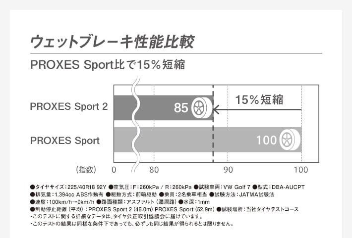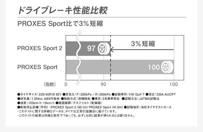 PROXES Sport 2(Blue)は PROXES Sport(Red)と比較し、応答性と収れん性が向上。