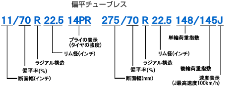 トラック&バス用タイヤサイズ表示の見方について